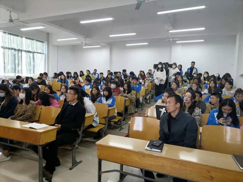 2021年10月18日伟德体育在宝福路校区为2022届毕业生举行毕业指导暨动员大会。经管与艺术公司党支部书记孟发军,经理杜海军,院办主任李豪斌,就业处校企合作科王博老师、继续教育中心王仲科老师、伟德体育各系主任及任课教师参加大会。
