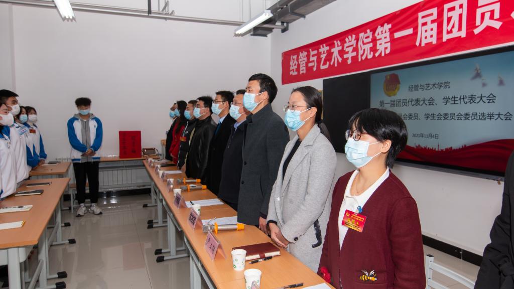 金风萧瑟秋光妙,激情满怀英气豪!11月4日下午,伟德体育第一届团、学代会暨公司第一届团总支委员会、员工会委员会成立大会在蟠龙校区112教室顺利召开。届时,公司党委副书记、纪委书记齐晓军,团委书记杨鹏出席会议,经管与艺术公司党支部书记孟发军、经理杜海军,公司办公室主任李豪斌,系主任王文燕、严立琼,辅导员何睦、杨涛以及教师与员工代表共计90人参加会议。会议由辅导员屈婉蓉主持。大会共八项议程。