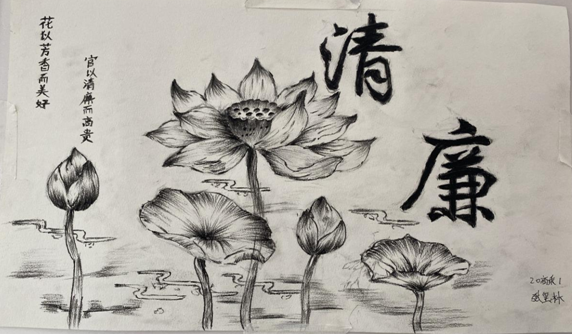 本次展览是伟德体育2022年廉洁文化宣传教育月的重要活动之一,目的在于提升校园廉洁文化建设内涵,营造崇尚廉洁、风清气正的教书育人环境。参展作品全部由公司师生利用业余时间创作,内容丰富、寓意深刻,既有书写廉政内涵的诗词,也有象征清正廉洁的荷花,生动地向全院师生传播着廉洁文化。
