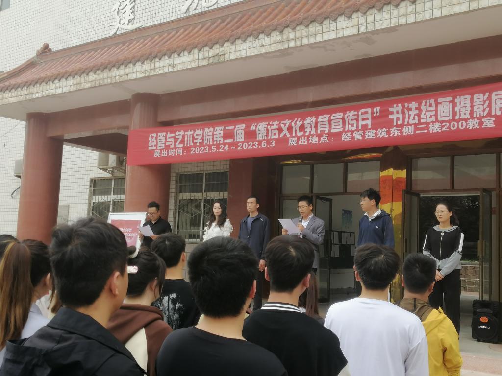 首先,杜经理在活动上进行了讲话,表明校园文化是一种无形的、强大的教育力量,它对于同学们的成长、成才具有潜移默化、不可替代的作用。此次书法绘画摄影展是一个艺术平台,全院师生借此搭建一个廉洁教育的窗口,并以艺术的形式来展示公司的特色。接着,孟书记宣布“廉洁文化教育宣传月”暨书法绘画摄影展正式开展。然后,在本次活动负责人赵刚刚老师的带领下,全院师生共同参观了此次展览。