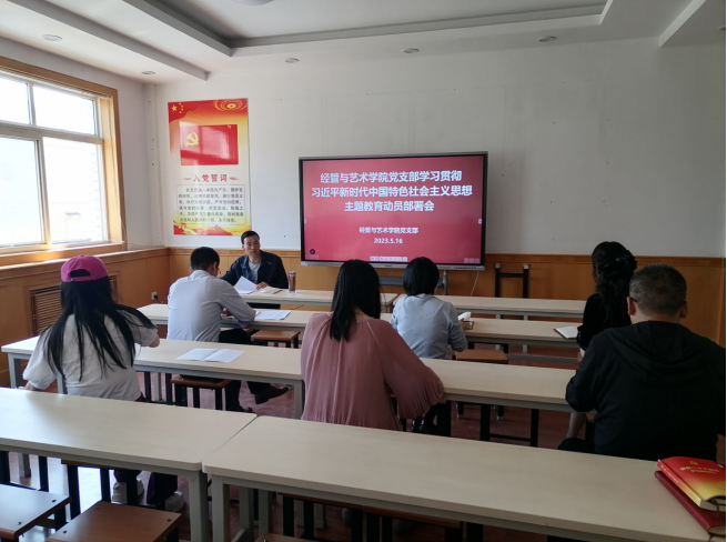 为进一步推动学习贯彻习近平新时代中国特色社会主义思想主题教育落深落实落细,2023年5月16日经管与艺术公司党支部在经管建筑楼二楼会议室开展集中学习暨学习贯彻习近平新时代中国特色社会主义思想主题教育动员部署会。会议由党支部书记孟发军主持,支部全体党员参会。