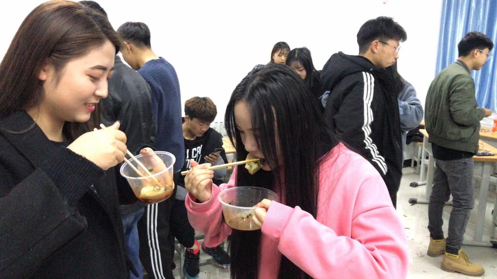 图四 师生一起品尝饺子