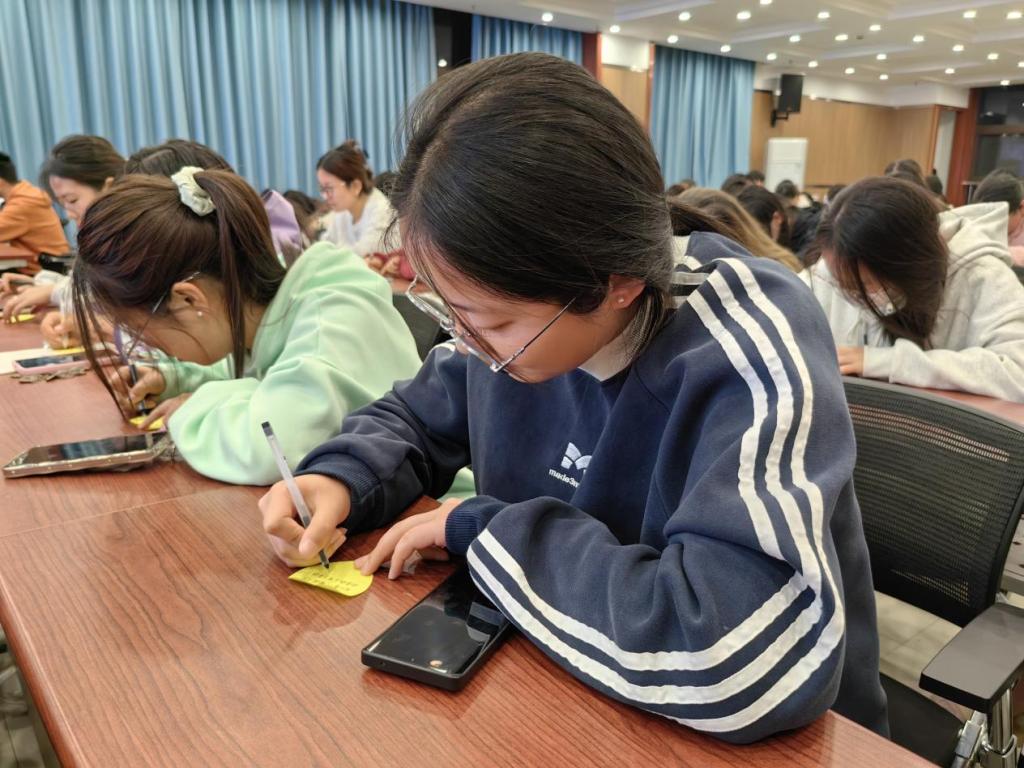 放映结束后,大家围绕着影片中的家庭关系、成长困境和幸福感等话题展开深入交流,分享彼此的心得体会和情感感悟,并将影片对心灵的触碰化为文字,写在爱心便利贴上。