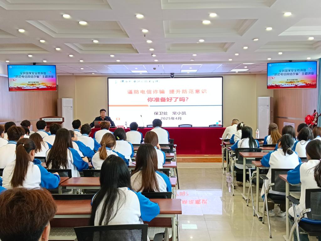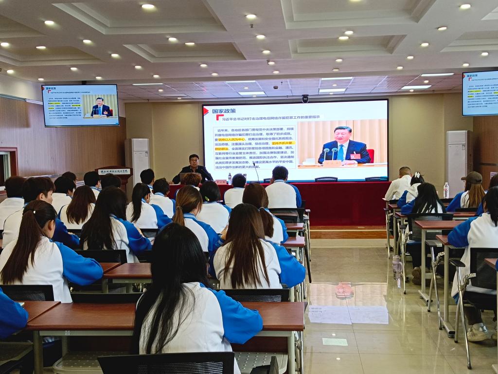 集团保卫处处长常小凯围绕“认识诈骗、了解常见骗术、典型案例剖析”向师生们普及了反电信网络诈骗的相关知识。讲座现场,常处长结合当前高发的电信网络诈骗类型,重点剖析了刷单返利”、“杀猪盘”、“冒充公检法”、“校园贷”“虚构中奖”“网络游戏产品”等典型诈骗手法通过播放真实案例视频、展示诈骗话术等方式,层层揭秘诈骗套路,让师生们直观感受到诈骗分子的狡猾手段,并帮助大家掌握防诈防骗技巧,为师生们筑牢电信网络安全防线,共建安全和谐平安校园。